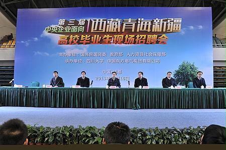 為貫徹黨的十八大和十八屆三中全會(huì)精神,深入落實(shí)中央關(guān)于援藏、援青、援疆工作的總體部署,積極做好促進(jìn)西藏青海新疆高校畢業(yè)生,特別是少數(shù)民族高校 畢業(yè)生就業(yè)工作,12月18日,國資委、教育部、人力資源社會(huì)保障部在四川大學(xué)聯(lián)合舉辦“第三屆中央企業(yè)面向西藏青海新疆高校畢業(yè)生現(xiàn)場(chǎng)招聘會(huì)”。國資委 副主任徐福順、人力資源社會(huì)保障部副部長(zhǎng)信長(zhǎng)星出席招聘會(huì)并講話。74家中央企業(yè)代表和20多所高校代表參加了本次招聘會(huì)。