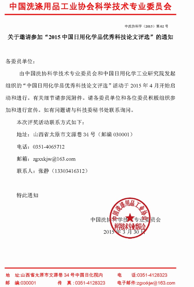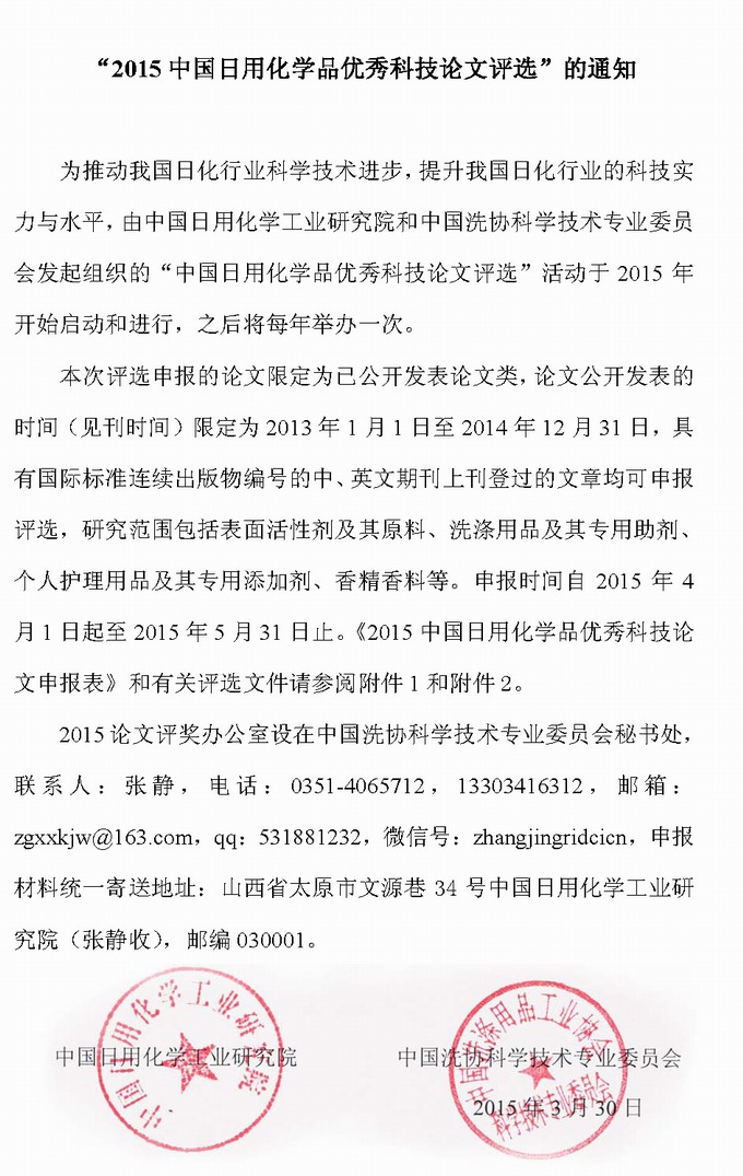 附件下載:1.中國日用化學品優(yōu)秀科技論文評選獎勵辦法