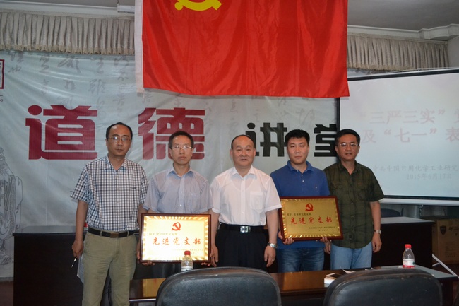 黨課結(jié)束后,院黨委委員程寧副院長(zhǎng)宣讀了《關(guān)于表彰2015年度日化院先進(jìn)黨支部和優(yōu)秀共產(chǎn)黨員的決定》。并由王萬緒書記為榮獲先進(jìn)黨支部的中輕日化黨支部和裝備研究黨支部以及8名優(yōu)秀共產(chǎn)黨員頒獎(jiǎng)。