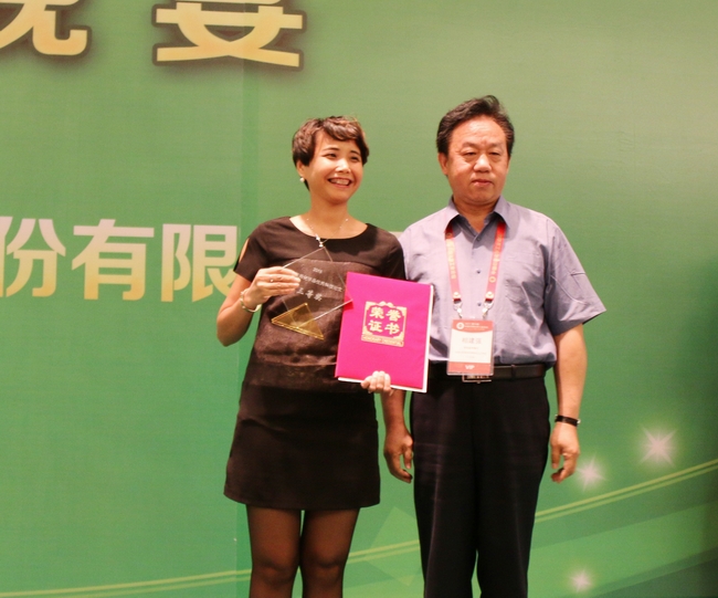 頒獎(jiǎng)嘉賓、中國(guó)輕工業(yè)信息中心副主任郭永新向三等獎(jiǎng)獲獎(jiǎng)?wù)邠P(yáng)州市產(chǎn)品質(zhì)量監(jiān)督檢驗(yàn)所代表頒獎(jiǎng)