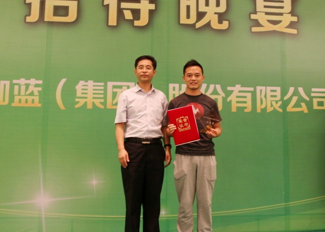 頒獎(jiǎng)嘉賓、伽藍(lán)(集團(tuán))股份有限公司執(zhí)行總裁劉玉亮向三等獎(jiǎng)獲得者上海發(fā)凱化工有限公司代表頒獎(jiǎng)