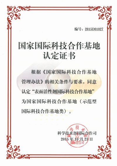 中國日化院“表面活性劑國際科技合作基地”的認定,既是對日化院近年來國際科技合作與交流工作的充分肯定,也標志著日化院國際化戰(zhàn)略取得重大階段性成果。