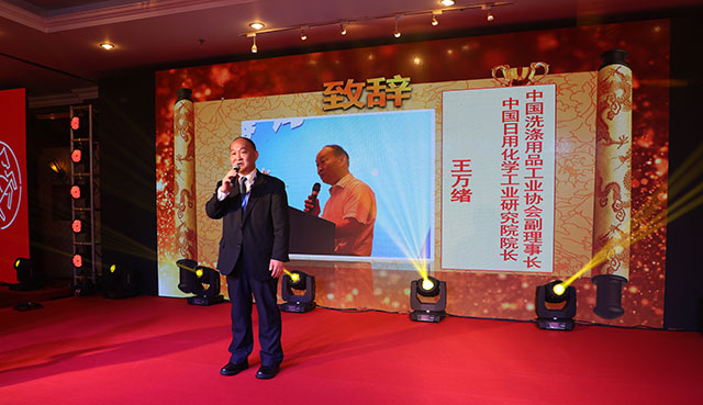 中國(guó)洗滌用品工業(yè)協(xié)會(huì)副理事長(zhǎng)、中國(guó)日化院王萬(wàn)緒院長(zhǎng)在頒獎(jiǎng)典禮致辭