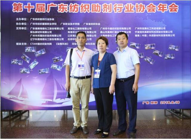 2018年8月18日,由廣東紡織助劑行業(yè)協(xié)會(huì)舉辦的“第十屆廣東紡織助劑行業(yè)協(xié)會(huì)年會(huì)”在佛山順德仙泉酒店召開。中國日化院新技術(shù)推廣中心技術(shù)總監(jiān)牛金平等3人參加了會(huì)議。