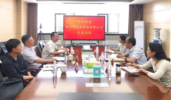 2023年5月17日下午,浙江傳化日用品有限公司董事長(zhǎng)朱滌飛、總經(jīng)理張梁、研發(fā)部長(zhǎng)喻德峰一行來訪中國(guó)日用化學(xué)研究院。中國(guó)日化院院長(zhǎng)耿濤、院長(zhǎng)助理羅毅、應(yīng)用技術(shù)創(chuàng)新中心主任臺(tái)秀梅等相關(guān)人員接待了來訪客人并進(jìn)行了技術(shù)交流。